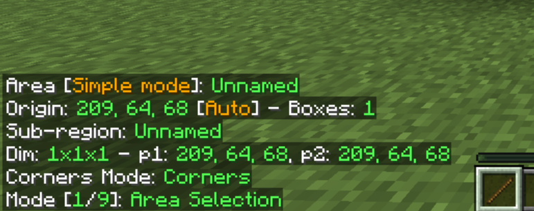 WorldEdit ではお馴染みの木の斧ですが, Litematica では木の棒を使う.